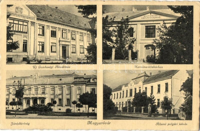 Magyaróvár, Mosonmagyaróvár; Karolina közkórház, új gazdasági akadémia... https://www.darabanth.com/de/423-Fernauktion/423.0/Ansichtskarten/Ungarn~1500004/Magyarovar-Mosonmagyarovar-Karolina-kozkorhaz-uj-gazdasagi-akademia-jarasbirosag-~II1885704