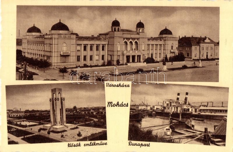 Mohács, városháza, Hősök emlékműve https://www.darabanth.com/de/423-Fernauktion/423.0/Ansichtskarten/Ungarn~1500004/Mohacs-varoshaza-Hosok-emlekmuve~II1720587