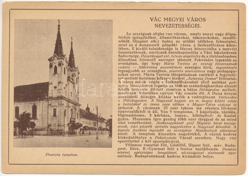 Vác, Város nevezetességei: Piarista templom. Farkasfalvi Kornél kiadás... https://www.darabanth.com/de/423-Fernauktion/423.0/Ansichtskarten/Ungarn~1500004/Vac-Varos-nevezetessegei-Piarista-templom-Farkasfalvi-Kornel-kiadasa-EK~II2686447