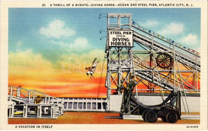 Atlantic City (New Jersey), A Thrill Of A Minute - Diving Horse - Ocea... https://www.darabanth.com/de/423-Fernauktion/423.0/Ansichtskarten/Vereinigte-Staaten-von-Amerika~1500016/Atlantic-City-New-Jersey-A-Thrill-Of-A-Minute-Diving-Horse-Ocean-End-Steel-Pier-A-Vacation-I~II2689064