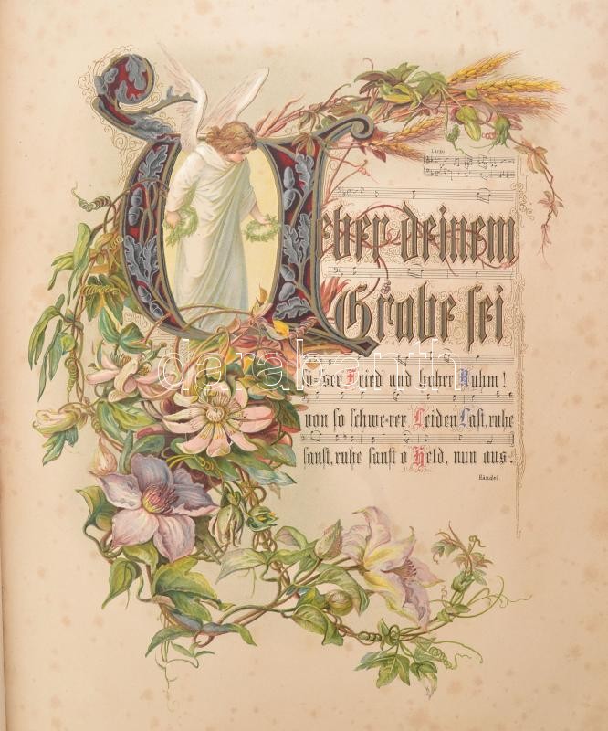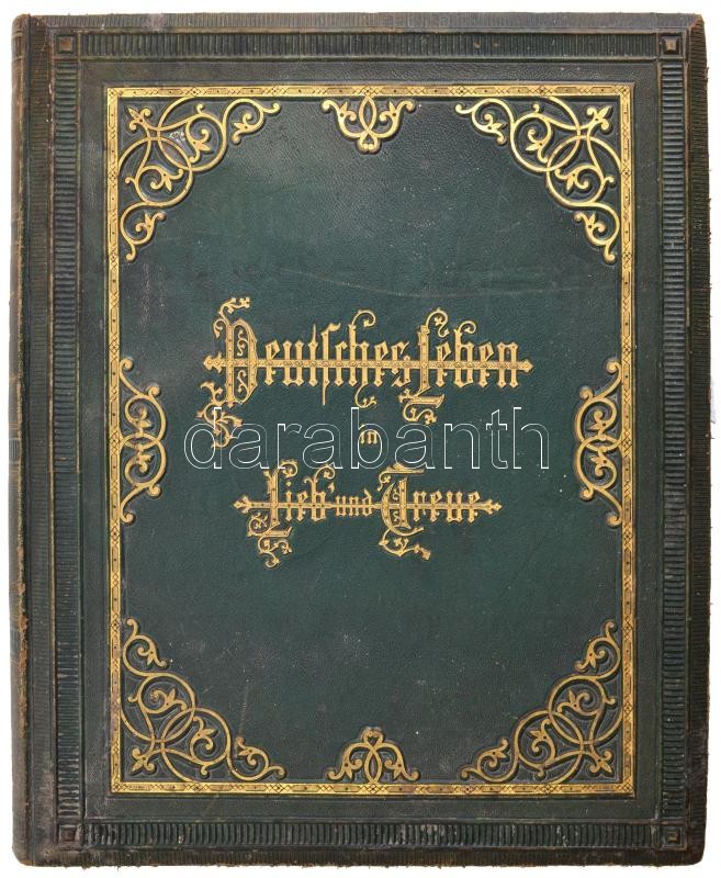 Deutsches Leben in Lieb und Treue. Bremen, é.n. (1885 k.), C. Ed. Müller. 8 db egészoldalas színes litografált illusztrációval. Vaknyomásos aranyozott egészvászon díszkötésben, aranyozott lapélekkel, kopott gerinccel és borítóval, foltos lapokkal.