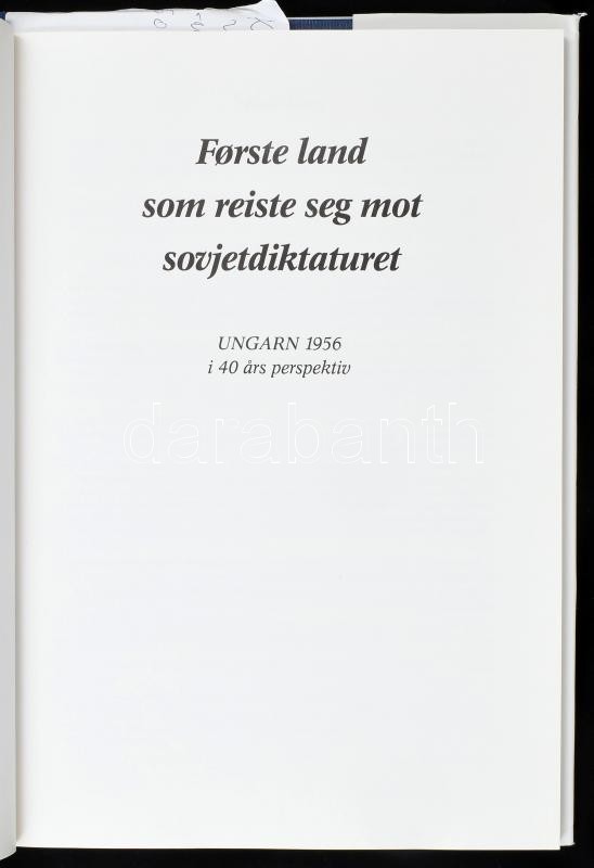 Forste land som reiste seg mot sovjetdiktaturet. Ungarn 1956 i 40 ars perpektiv. Oslo, 1996., Universitetsbibliotekets Trykkeri. Norvég nyelven. Kiadói egészvászon-kötés, kiadói papír védőborítóban.