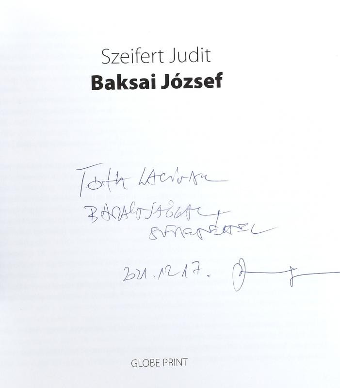 Szeifert Judit: Baksai. A művész, Baksai József (1957-) által dedikált... https://www.darabanth.com/de/423-Fernauktion/423.0/Bucher/Bucher-Architektur-Kunst~2000011/Szeifert-Judit-Baksai-A-muvesz-Baksai-Jozsef-1957-altal-dedikalt-Bp-2007-Globe-Print~II2689853