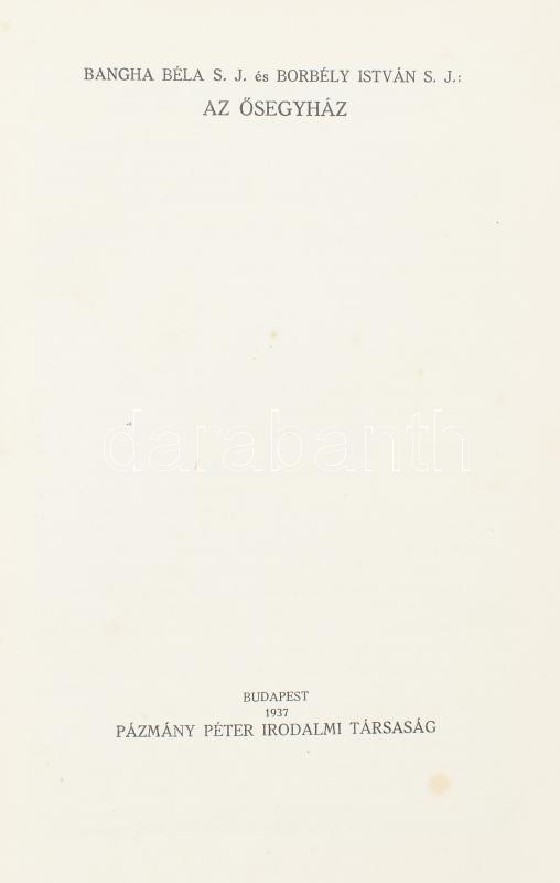 Bangha Béla - Borbély István: Az ősegyház. A keresztény egyház története I. köt. Bp., 1937., Pázmány Péter Irodalmi Társaság, 303 p.+4 t. Kiadói kopott egészvászon-kötés, kissé foltos lapokkal, néhány helyen ceruzás aláhúzással, jegyzettel.