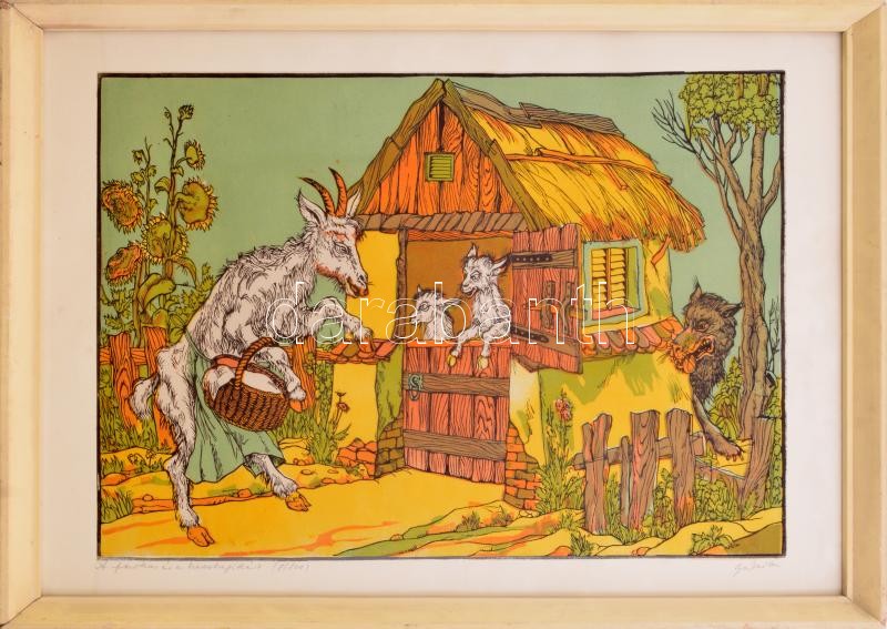 Gácsi Mihály (1926-1987): A farkas és a kecskegidák. (8/100) Színes li... https://www.darabanth.com/de/423-Fernauktion/423.0/Gemalde-und-Grafiken/Gemalde-und-Grafiken~22/Gacsi-Mihaly-1926-1987-A-farkas-es-a-kecskegidak-8100-Szines-linometszet-papir-jelze~II2687353