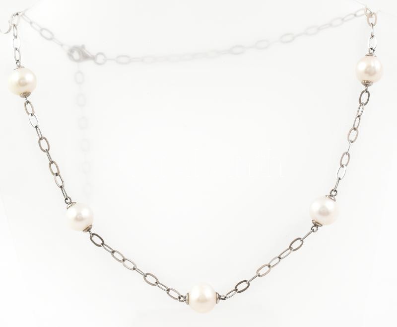 Beschreibung: Ezüst(Ag) nyaklánc tenyésztett gyönggyel, jelzett, h: 42 cm, bruttó: 11,8 g