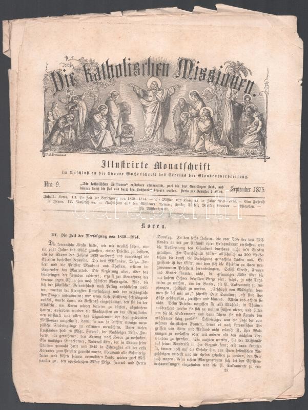 1875 Die katholischen Missionen német nyelvű katolikus misszionárius h... https://www.darabanth.com/de/423-Fernauktion/423.0/Kunst-Dokumente-andere-Sammelgebiete/Drucksachen~2000002/1875-Die-katholischen-Missionen-nemet-nyelvu-katolikus-misszionarius-havilap-4-db-lapszama-erd~II2693246