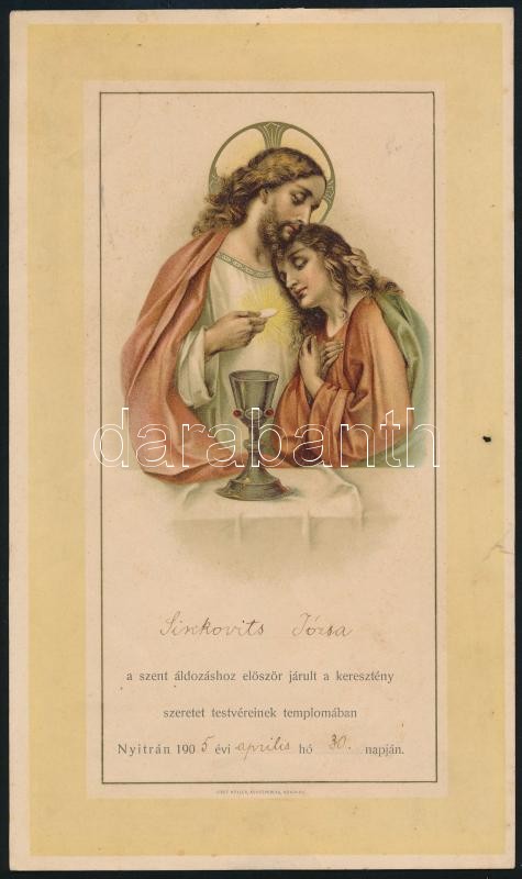 Beschreibung: 1905 Elsőáldozási emléklap Nyitra 14x,25 cm