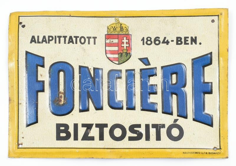 1864ben alapított Fonciére Biztosító zománctábla, horpadásokkal, 12x17... https://www.darabanth.com/de/423-Fernauktion/423.0/Kunst-Dokumente-andere-Sammelgebiete/Flohmarkt~33/1864ben-alapitott-Fonciere-Biztosito-zomanctabla-horpadasokkal-12x17cm~II2686839