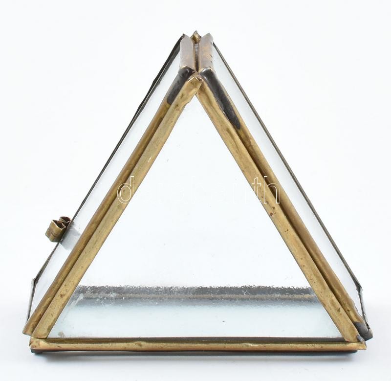 Beschreibung: Háromszög alakú réz, üvegbetétes dobozka, d: 7 cm