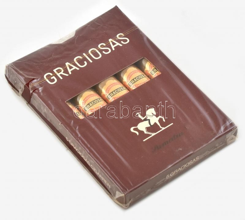 Sumatra Graciosas szivar, 5 db, bontatlan, de részben az oldalán sérül... https://www.darabanth.com/de/423-Fernauktion/423.0/Kunst-Dokumente-andere-Sammelgebiete/Flohmarkt~33/Sumatra-Graciosas-szivar-5-db-bontatlan-de-reszben-az-oldalan-serult-csomagolasban-11x8x1-5~II2690848