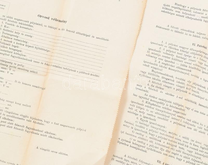Beschreibung: cca 1922 Pályázati hirdetmény az m. kir. örkényi honvéd altisztképző és nevelő intézet I. évfolyamában helyekre 6 p