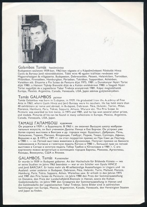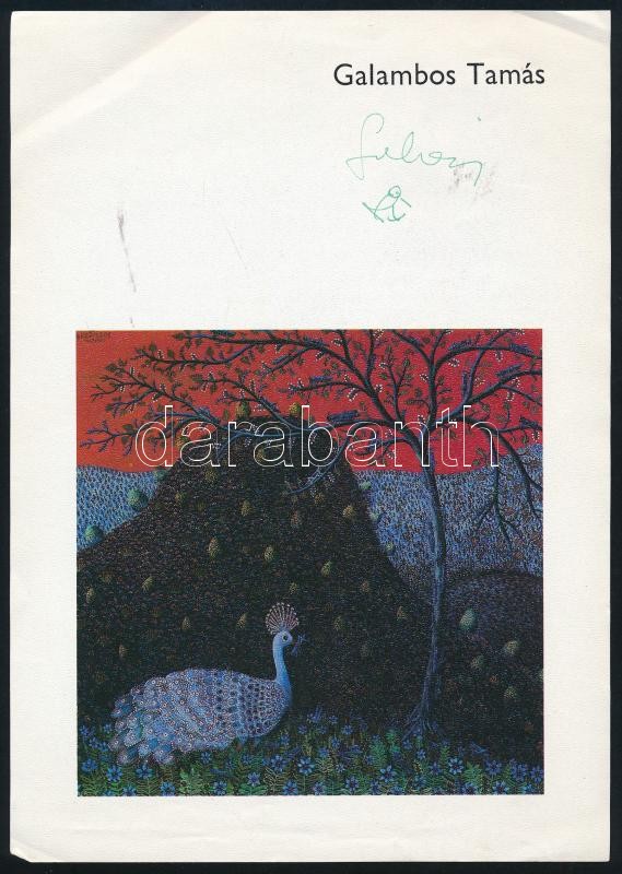 Beschreibung: Galambos Tamás (1939- ) festőművész autográf aláírása róla szóló nyomtatványon