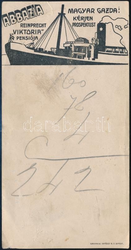 cca 1910 "Abbazia, Reinprecht "Viktoria" pensiója. Magy... https://www.darabanth.com/de/423-Fernauktion/423.0/Kunst-Dokumente-andere-Sammelgebiete/Werbungen~45/cca-1910-Abbazia-Reinprecht-Viktoria-pensioja-Magyar-gazda-Kerjen-prospektust-szamolocC3~II2691346