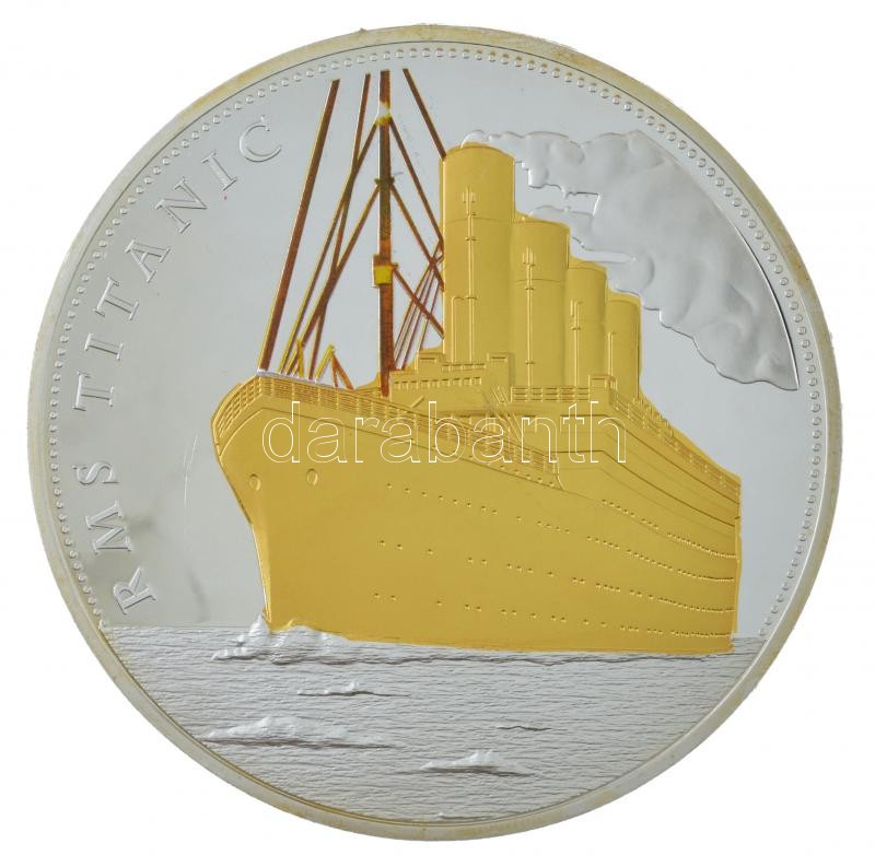 Beschreibung: DN "Titanic" kétoldalas, ezüstözött, részben aranyozott emlékérem (70mm) T:PP