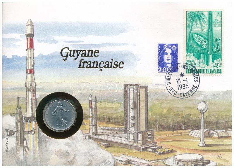 Franciaország / Francia Guyana 1965. 1Fr Ni felbélyegzett borítékban, bélyegzéssel, német nyelvű tájékoztatóval T:2- France / French Guyana 1977. 1 Franc Ni in envelope with stamp, cancellation and german language description C:VF