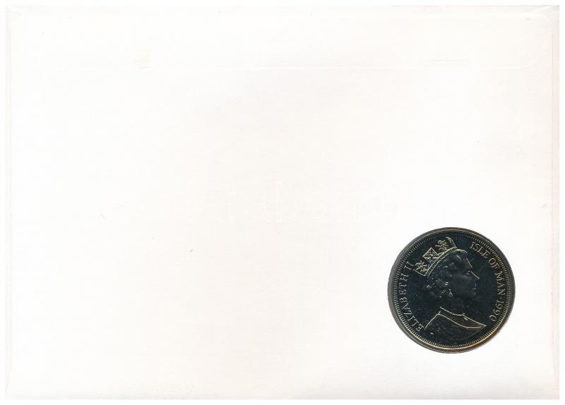 Isle of Man 1990. 1 Crown Cu-Ni "World Cup - Italy" in envelope with stamp and cancellation, with German description C:UNC