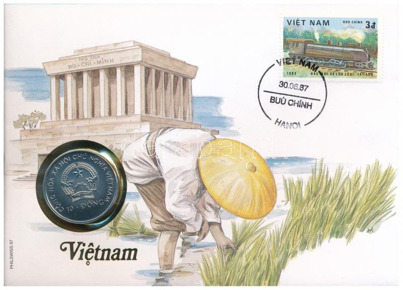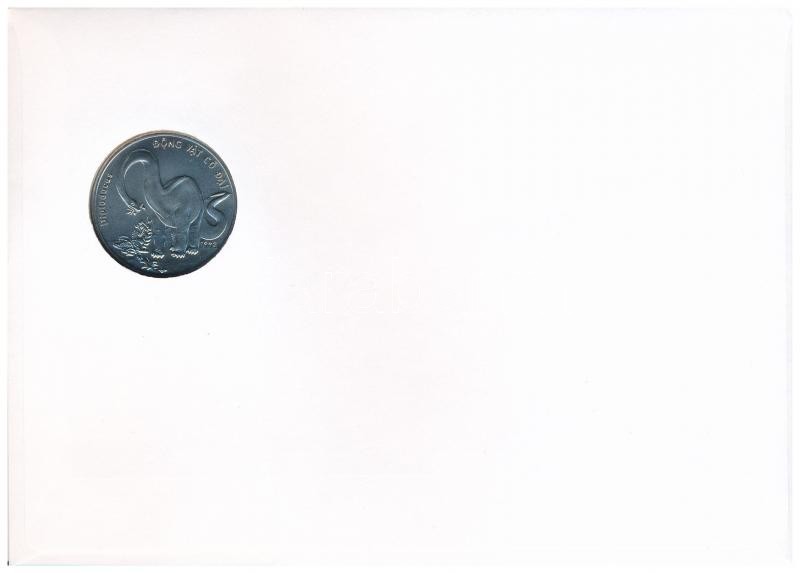 Vietnam 1993. 10 Dong "Prehistoric Animals series - Diplodocus" Cu-Ni in envelope with stamp, cancellation and a description in german C:UNC