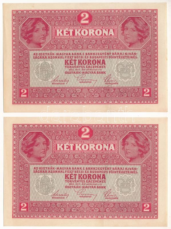 Adamo K6 https://www.darabanth.com/de/423-Fernauktion/423.0/Numismatik/Ungarische-Banknoten~6000007/1917-2K-2x-sorszamkoveto-TII-Adamo-K6~II2688558