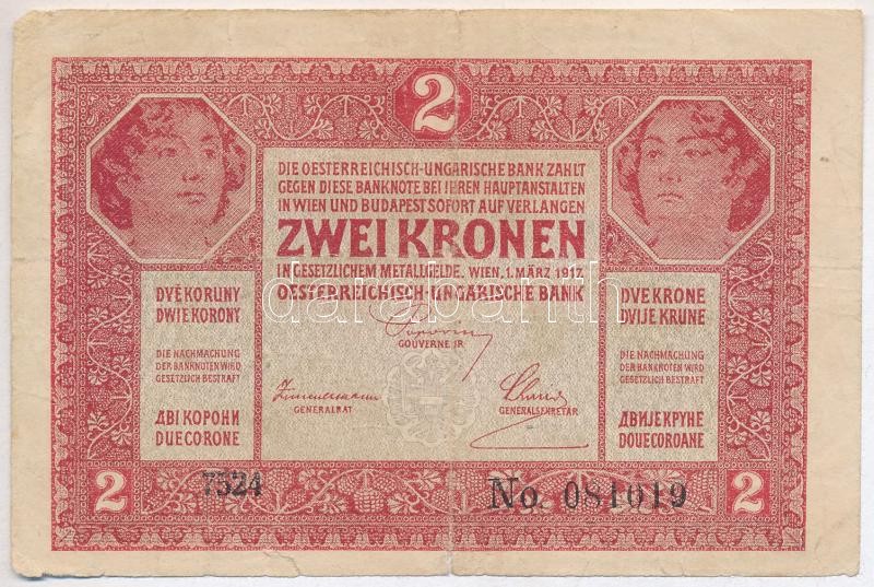 1917. 2K "7000 feletti sorozatszám" T:III- Adamo K6 https://www.darabanth.com/de/423-Fernauktion/423.0/Numismatik/Ungarische-Banknoten~6000007/1917-2K-7000-feletti-sorozatszam-TIII-Adamo-K6~II2687534