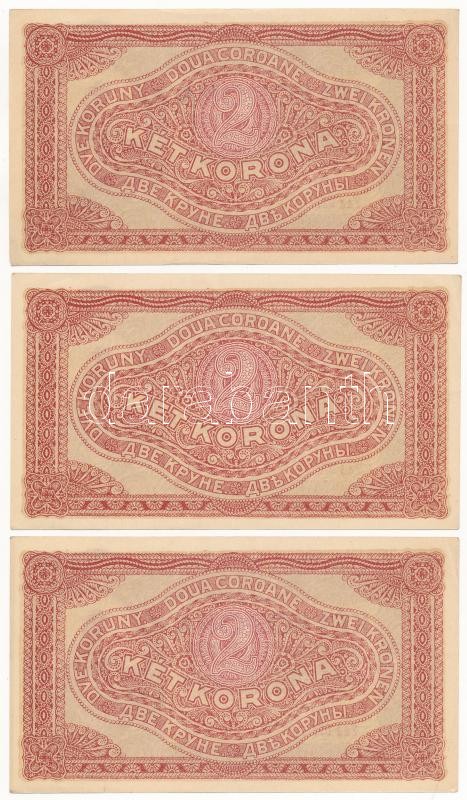 Beschreibung: 1920. 2K (3x) "2aa 027 803.702-803.704" sorszámkövetők T:III kis folt
