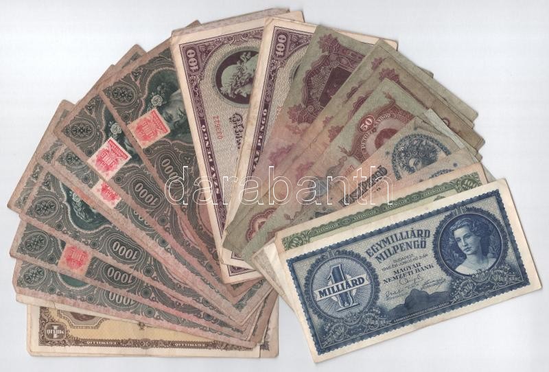 1930-1946. 41db-os magyar bankjegytétel T:III,III- https://www.darabanth.com/de/423-Fernauktion/423.0/Numismatik/Ungarische-Banknoten~6000007/1930-1946-41db-os-magyar-bankjegytetel-TIII-III-~II2690840