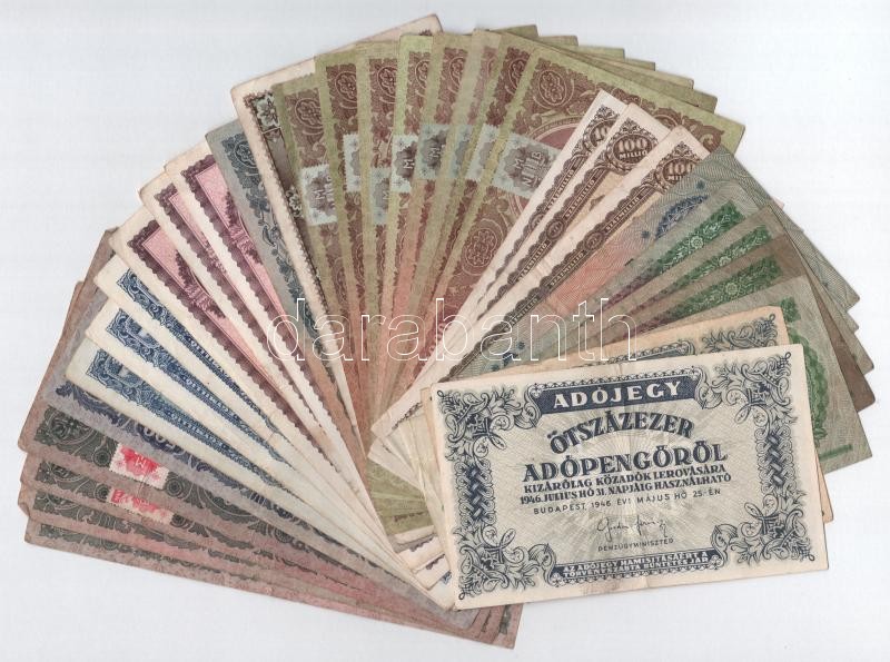 1936-1946. 34 db-os vegyes pengő bankjegy tétel T:III,III- https://www.darabanth.com/de/423-Fernauktion/423.0/Numismatik/Ungarische-Banknoten~6000007/1936-1946-34-db-os-vegyes-pengo-bankjegy-tetel-TIII-III-~II2687741