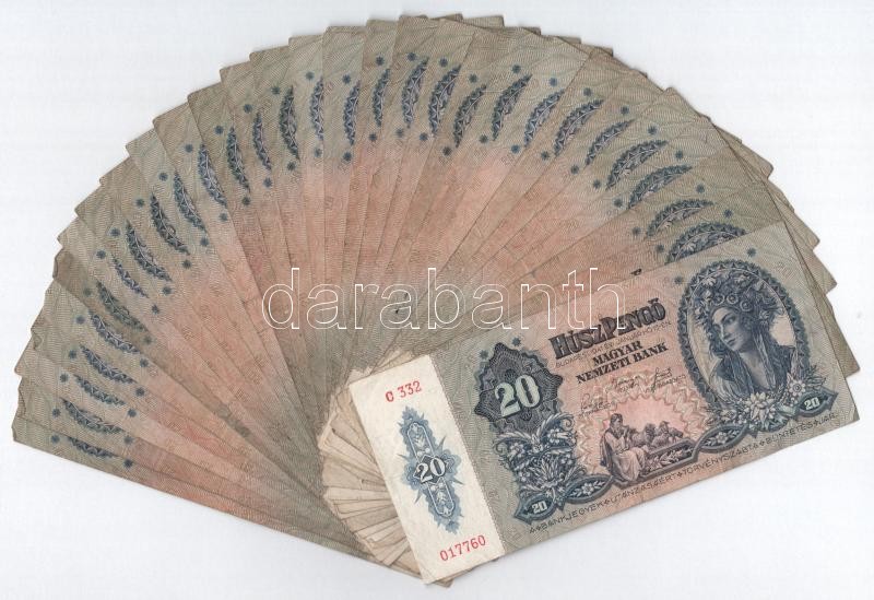 1941. 20P (30x) T:III,III- Adamo P12 https://www.darabanth.com/de/423-Fernauktion/423.0/Numismatik/Ungarische-Banknoten~6000007/1941-20P-30x-TIII-III-Adamo-P12~II2688749