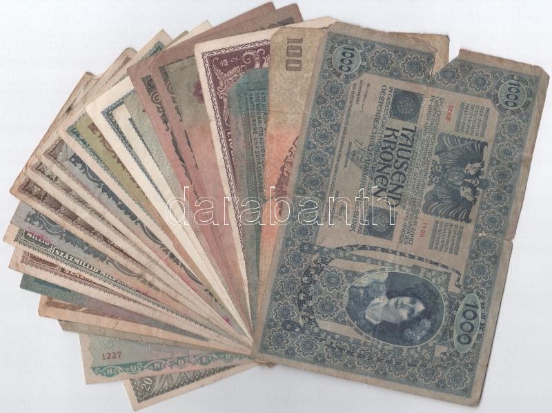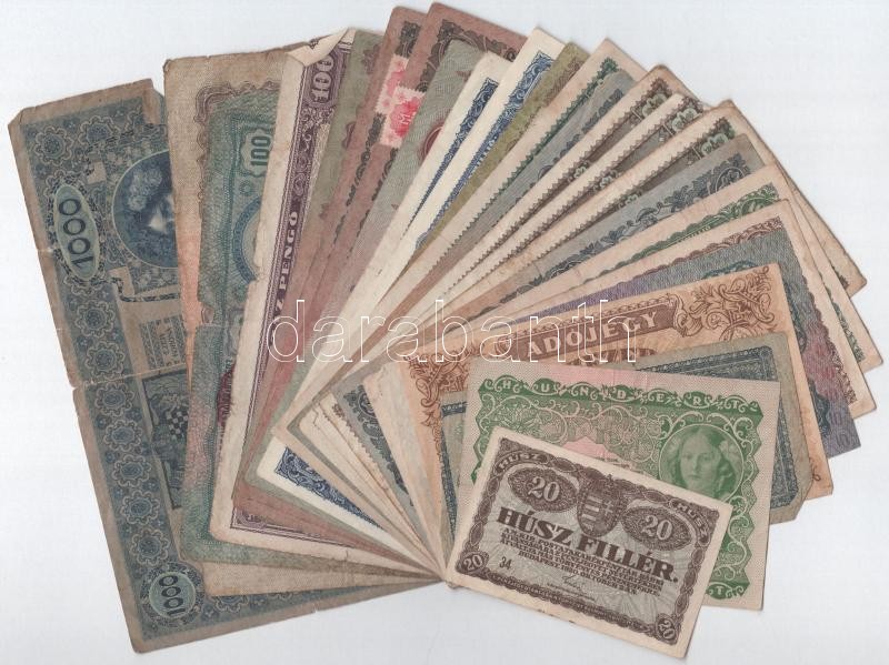 Beschreibung: Vegyes 24db-os korona és pengő bankjegy tétel, közte egy osztrák kiadás T:III,III-