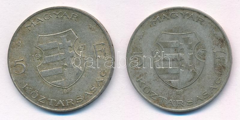 Beschreibung: 1947. 5Ft Ag "Kossuth" (2x) T:2-,3 patina Adamo F8.1