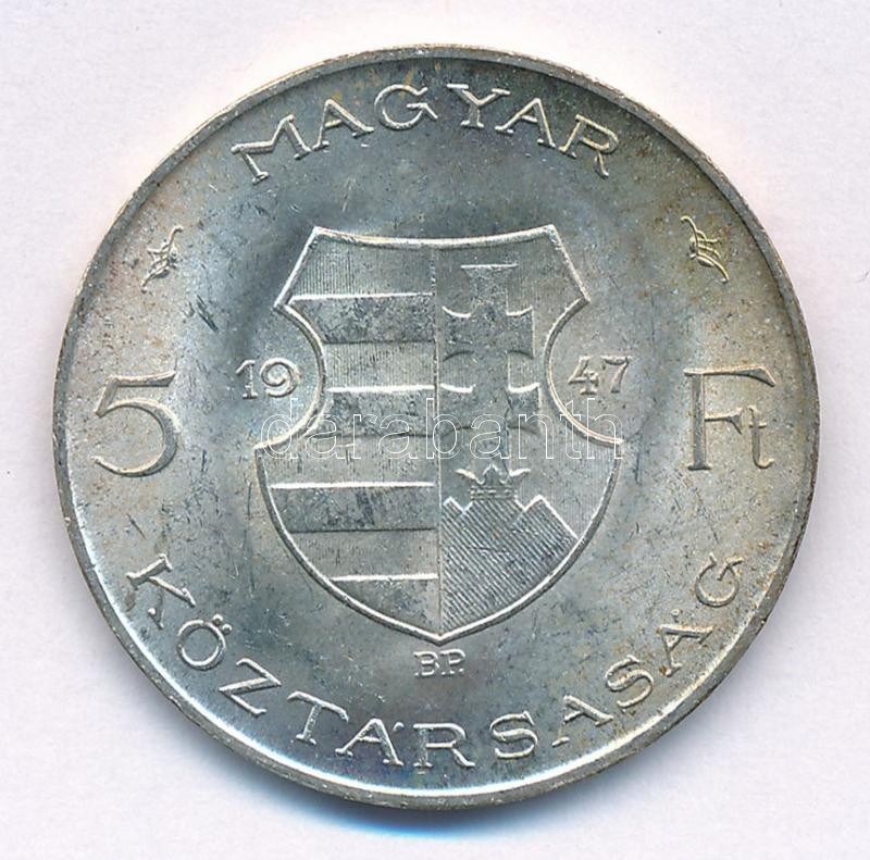 1947. 5Ft Ag "Kossuth" T:1- patina Adamo F8.1 https://www.darabanth.com/de/423-Fernauktion/423.0/Numismatik/Ungarische-Munzen-und-Munzen-mit-ungarischem-Munzzeichen~6000008/1947-5Ft-Ag-Kossuth-T1-patina-Adamo-F81~II2686099