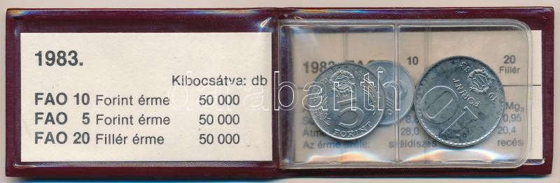 1983. 20f Al + 5Ft Ni + 10Ft Ni "FAO" sor, eredeti tokban ta... https://www.darabanth.com/de/423-Fernauktion/423.0/Numismatik/Ungarische-Munzen-und-Munzen-mit-ungarischem-Munzzeichen~6000008/1983-20f-Al-plus-5Ft-Ni-plus-10Ft-Ni-FAO-sor-eredeti-tokban-tanusitvannyal-T1-Adamo-EM69-EM70-EM~II2686822