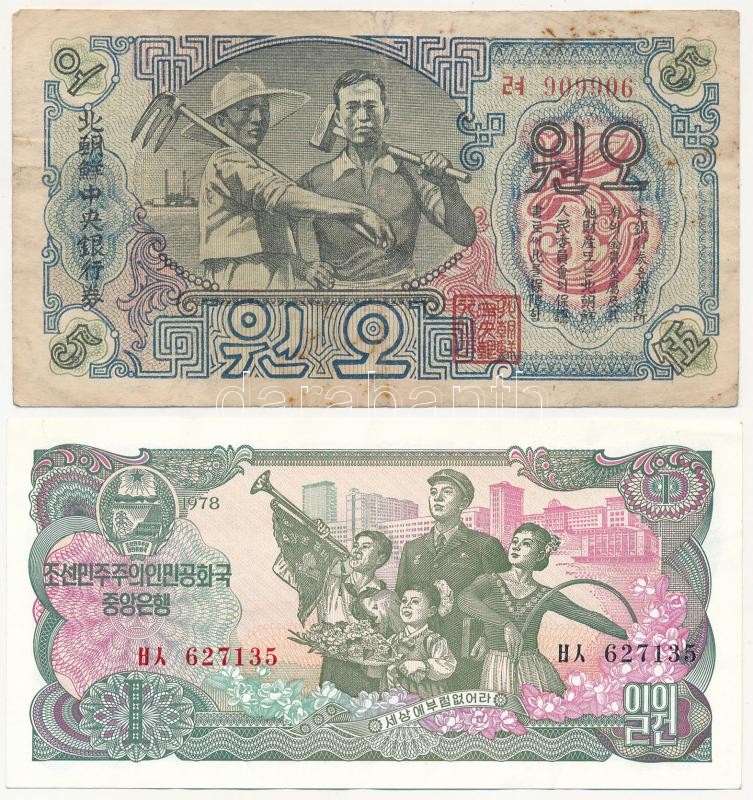 North Korea 1947. 5 Won + 1... https://www.darabanth.com/de/423-Fernauktion/423.0/Numismatik/Weltweit-Banknoten~6000014/Eszak-Korea-1947-5W-plus-1978-1W-TII-III--North-Korea-1947-5-Won-plus-1978-1-Won-CXF-F~II2624204