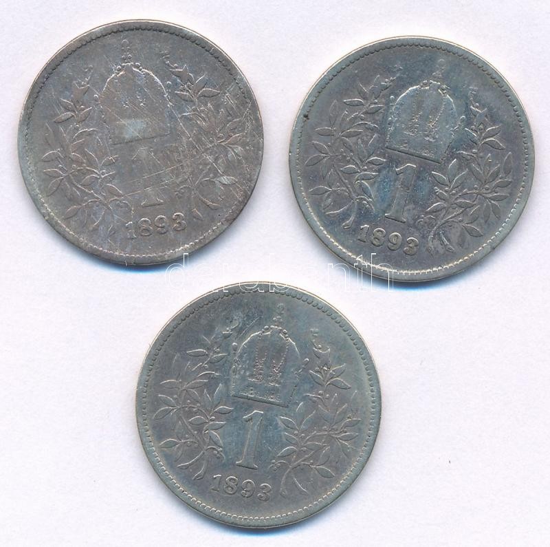 Beschreibung: Ausztria 1893. 1K Ag "Ferenc József" (3x) T:3 patina, karc, ü.