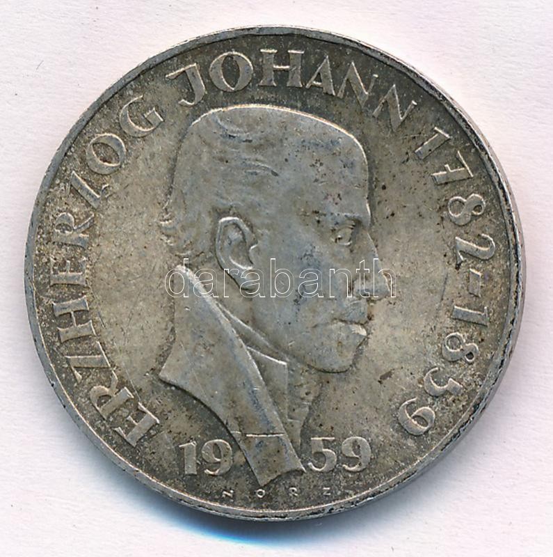 Austria 1959. 25 Schilling Ag "100th Anniversary of the Death of Archduke Johann" non-circulating commemorative coin C:VF patina, edge error, scratch