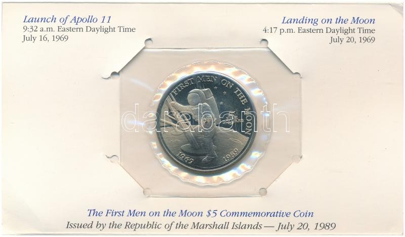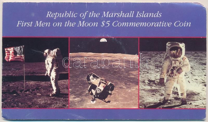 Marshall-szigetek 1989. 5$ Cu-Ni "Első ember a Holdon" fóliatokban, angol nyelvű leírással T:PP