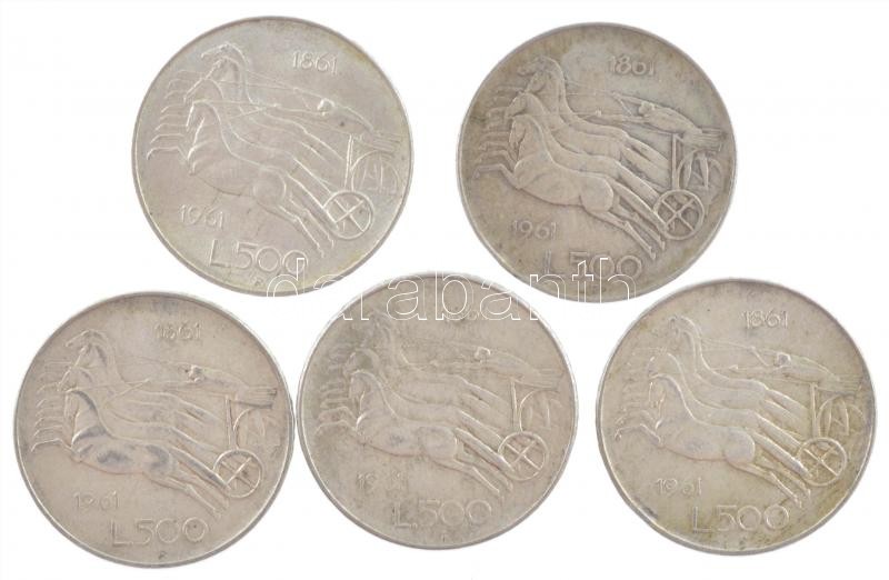 Beschreibung: Olaszország 1961. 500L Ag "Olasz egység századfordulója" (5x) T:2,2- Italy 1961. 500 Lire Ag "Italian Unification Centennial" (5x) C:XF,VF Krause KM#99
