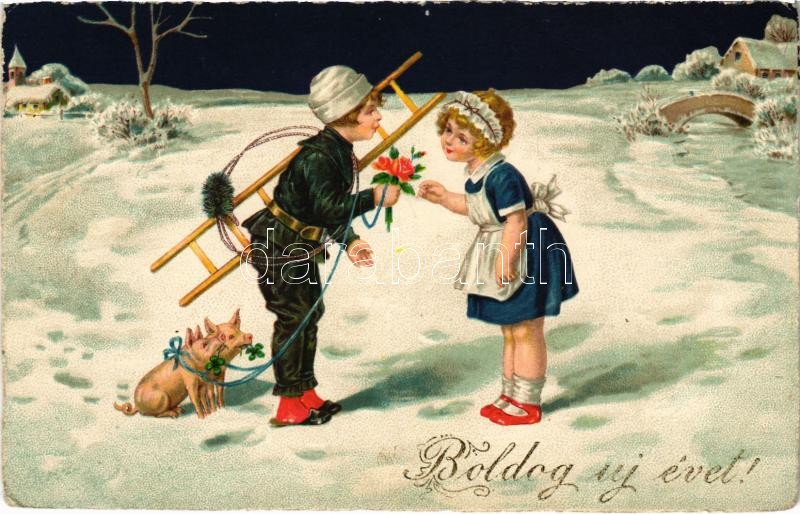Boldog új évet! Kéményseprő malacokkal / New Year greeting, chimney sw... https://www.darabanth.com/de/424-Fernauktion/424.0/Ansichtskarten/GruC39Fkarten-Feste~1000084/Boldog-uj-evet-Kemenysepro-malacokkal-New-Year-greeting-chimney-sweeper-with-pigs-EAS-1102~II2699215
