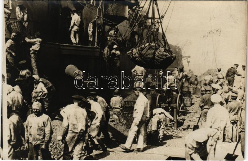Beschreibung: Osztrák-magyar haditengerészet matrózai szénrakodás közben / K.u.K. Kriegsmarine Kohleneinschiffung / WWI Austro-Hungarian Navy mariners loading coal. photo (EK)