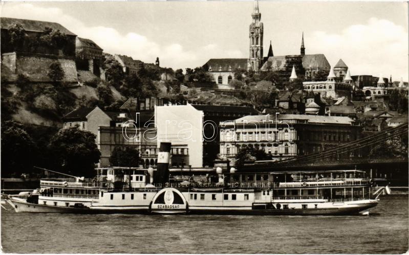 Beschreibung: 1966 "SZABADSÁG" gőzüzemű oldalkerekes személyhajó Budapesten. Képzőművészeti Alap / Hungarian passenger steamship