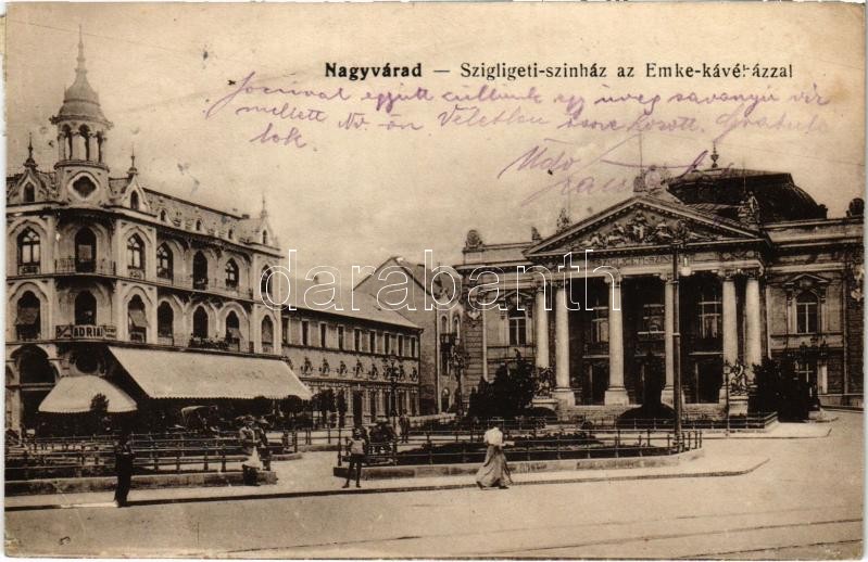 1919 Nagyvárad, Oradea; Szigligeti színház az Emke kávéházzal, Adria b... https://www.darabanth.com/de/424-Fernauktion/424.0/Ansichtskarten/Siebenburgen~1000006/1919-Nagyvarad-Oradea-Szigligeti-szinhaz-az-Emke-kavehazzal-Adria-biztosito-Vasuti-leve~II2700140