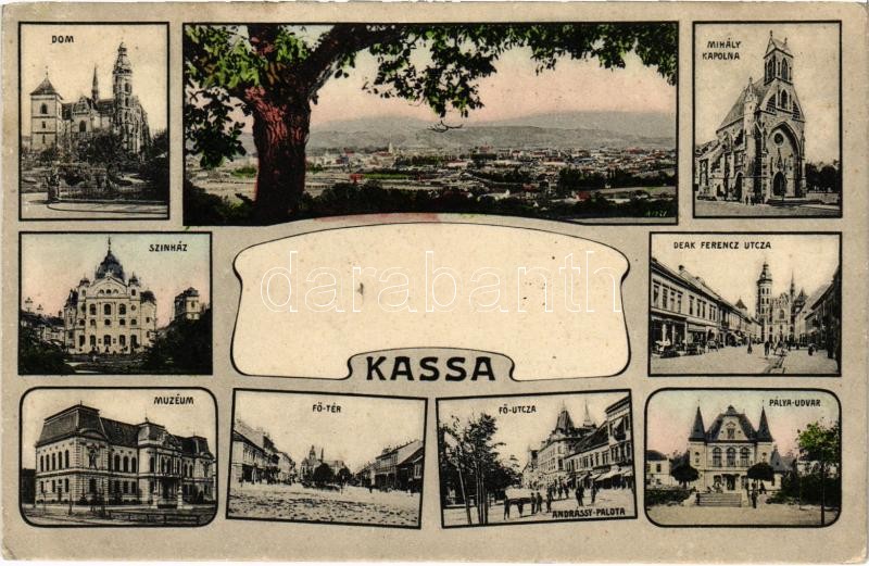 1906 Kassa, Kosice; dóm, színház, múzeum, Fő tér és utca, vasútállomás, Andrássy palota, Mihály kápolna, Deák Ferenc utca / cathedral, theatre, museum, main square and street, railway station, chapel. Art Nouveau (EK)