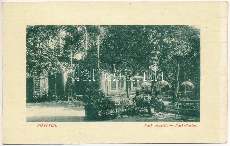 Pöstyén, Piestany; park részlet. W.L. Bp. 5746. Schultz Paula kiadása ... https://www.darabanth.com/de/424-Fernauktion/424.0/Ansichtskarten/Slowakei~1000007/Postyen-Piestany-park-reszlet-WL-Bp-5746-Schultz-Paula-kiadasa-park-vagott-cut~II2674152