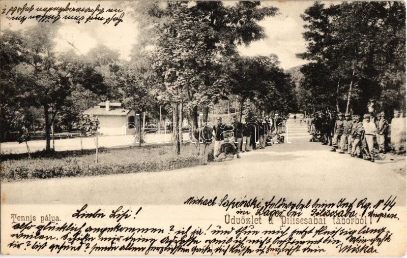 1904 Piliscsaba-tábor, Teniszpálya katonákkal / K.u.K. soldiers with t... https://www.darabanth.com/de/424-Fernauktion/424.0/Ansichtskarten/Ungarn~1000005/1904-Piliscsaba-tabor-Teniszpalya-katonakkal-KuK-soldiers-with-the-tennis-court~II1927310