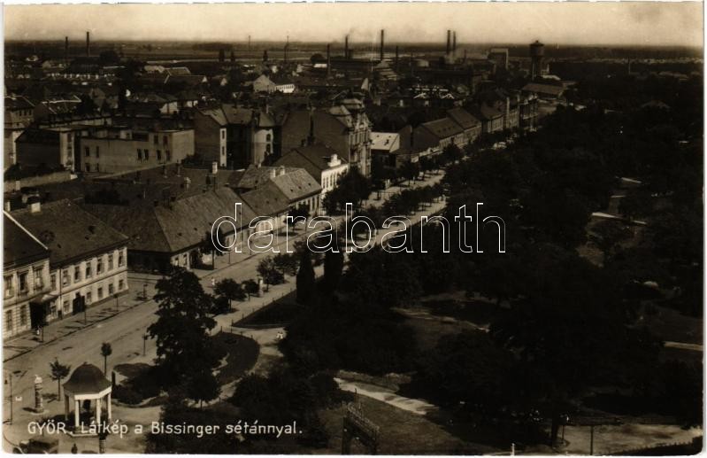 1935 Győr, Látkép a Bissinger sétánnyal, Weisz Soma üzlete, háttérben ... https://www.darabanth.com/de/424-Fernauktion/424.0/Ansichtskarten/Ungarn~1000005/1935-Gyor-Latkep-a-Bissinger-setannyal-Weisz-Soma-uzlete-hatterben-gyarak-es-viztorony~II2698012