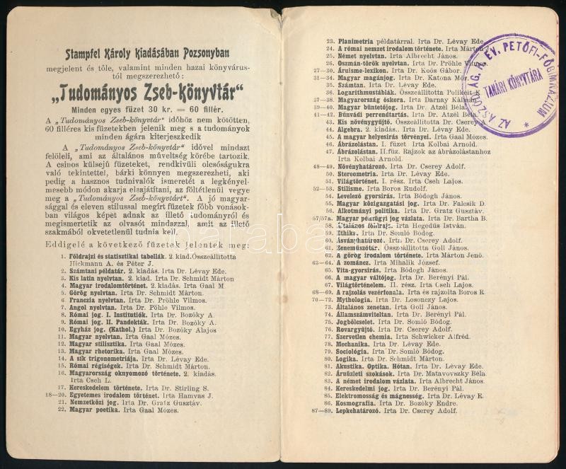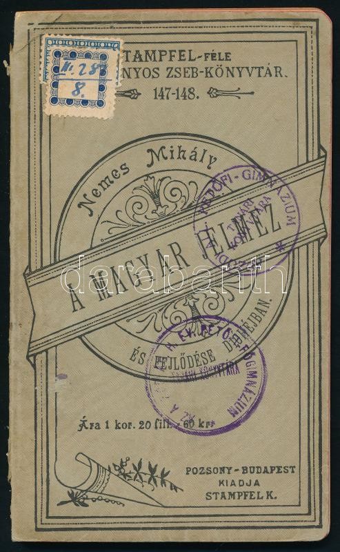 Nemes Mihály: A magyar jelmez és fejlődése dióhéjban. Stampfel-féle Tudományos Zseb-könyvtár 147-148. Pozsony-Bp.,1903,Stampfel Károly. Kiadói papírkötés, a gerincen kis sérüléssel, intézményi bélyegzővel.