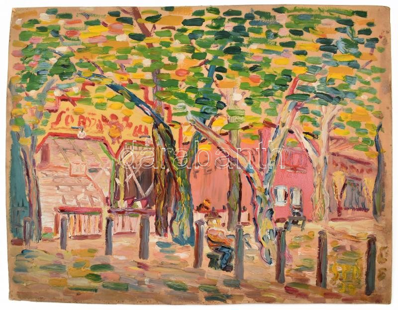 Nolipa István Pál (1907-1986): Népliget nyáron. Olaj, karton. Jelzett, hátoldalán töredékes Nemzeti Szalon kiállítási raglappal és autográf felirattal. 27x35 cm