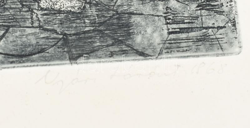 Beschreibung: Nyári Lóránt (1928-1982): Áradás után, 1968. Rézkarc, papír, jelzett, 49×29 cm