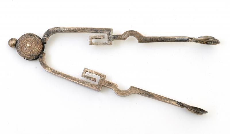 Beschreibung: Ezüst (Ag) régi monogramos cukorfogó. Jelzett, kopásnyomokkal, 39,6 g, h: 16,5 cm