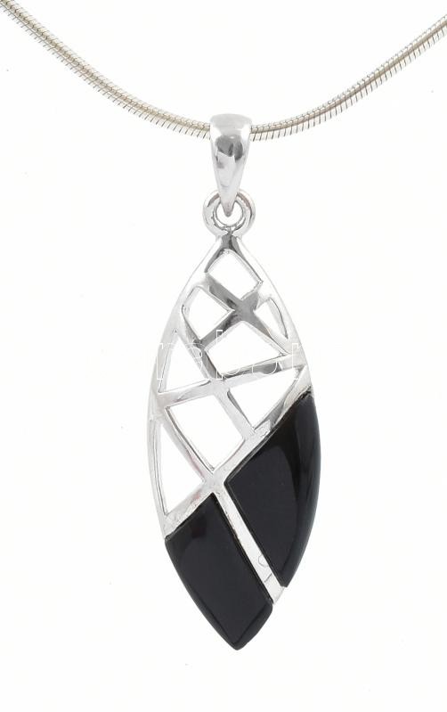 Beschreibung: Ezüst(Ag) kígyó nyaklánc fekete köves függővel, jelzett, h: 40 cm, bruttó: 7,9 g